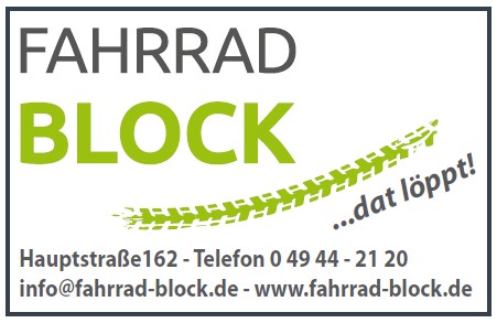 Bitte informieren Sie sich online auf der Internetseite www.fahrrad-block.de oder telefonisch unter 04944 2120Öffnungszeiten