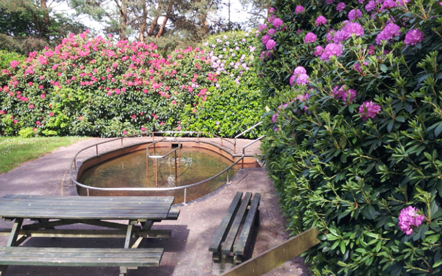 Es ist die wunderschön gelegene Kneippanlage, direkt an der Blumenhalle. Sitzmöglichkeiten sind ebenfalls vorhanden. Die Fahrräder können ein paar Meter weiter an der Blumenhalle abgestellt werden.